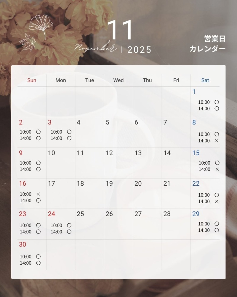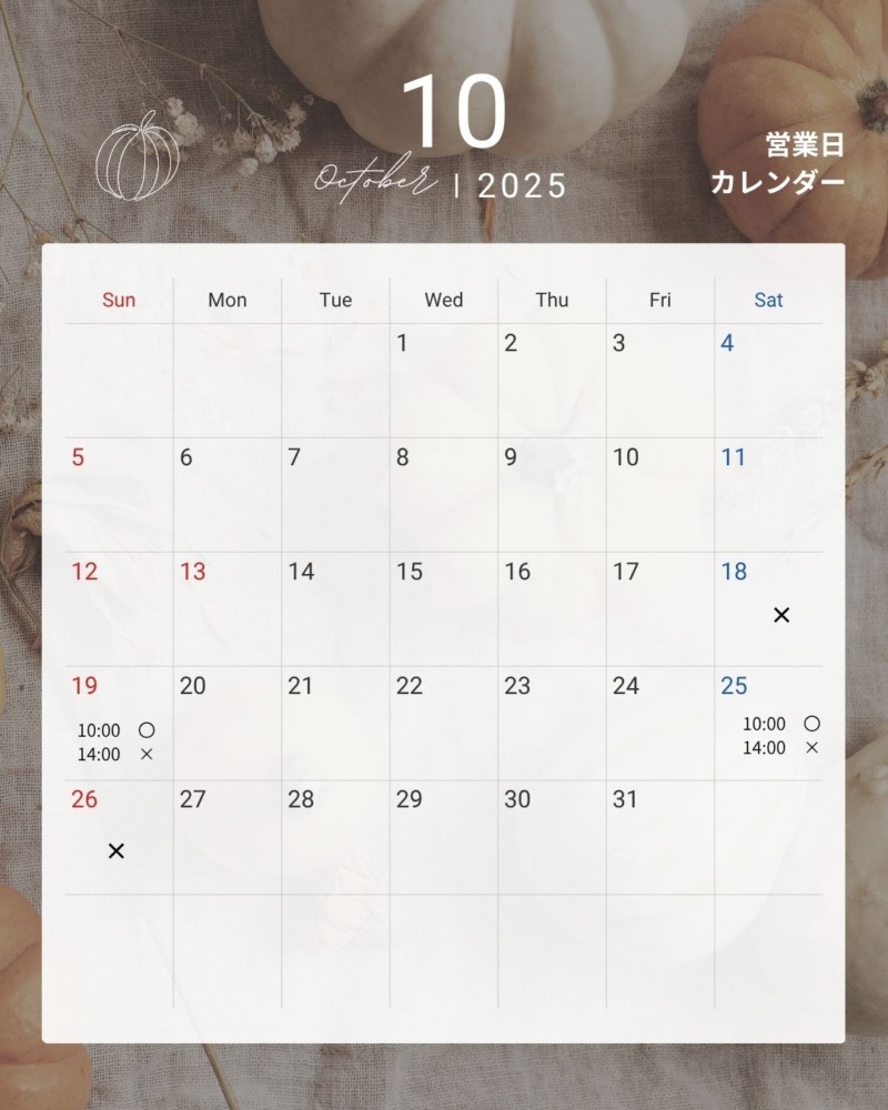 10月13日 月曜日更新★2025.10~11月予約状況】