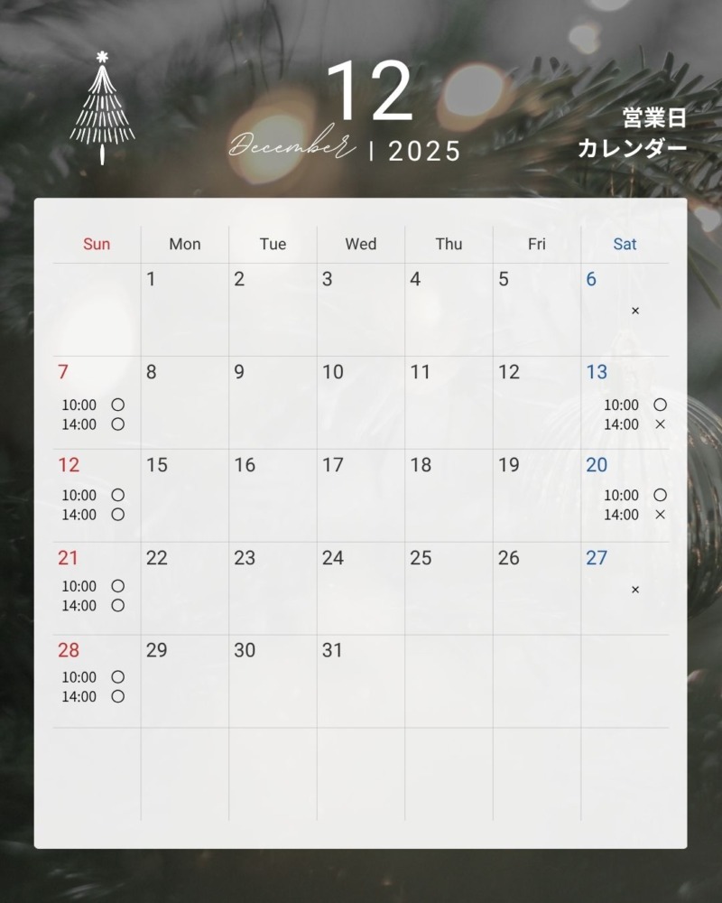 11月17日 月曜日更新★2025.11~2026.1月予約状況】