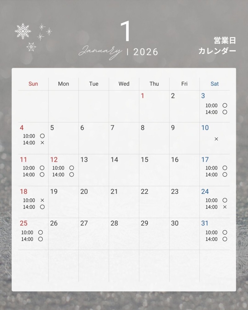 12月29日 月曜日更新★2026.1~2026.2月予約状況】